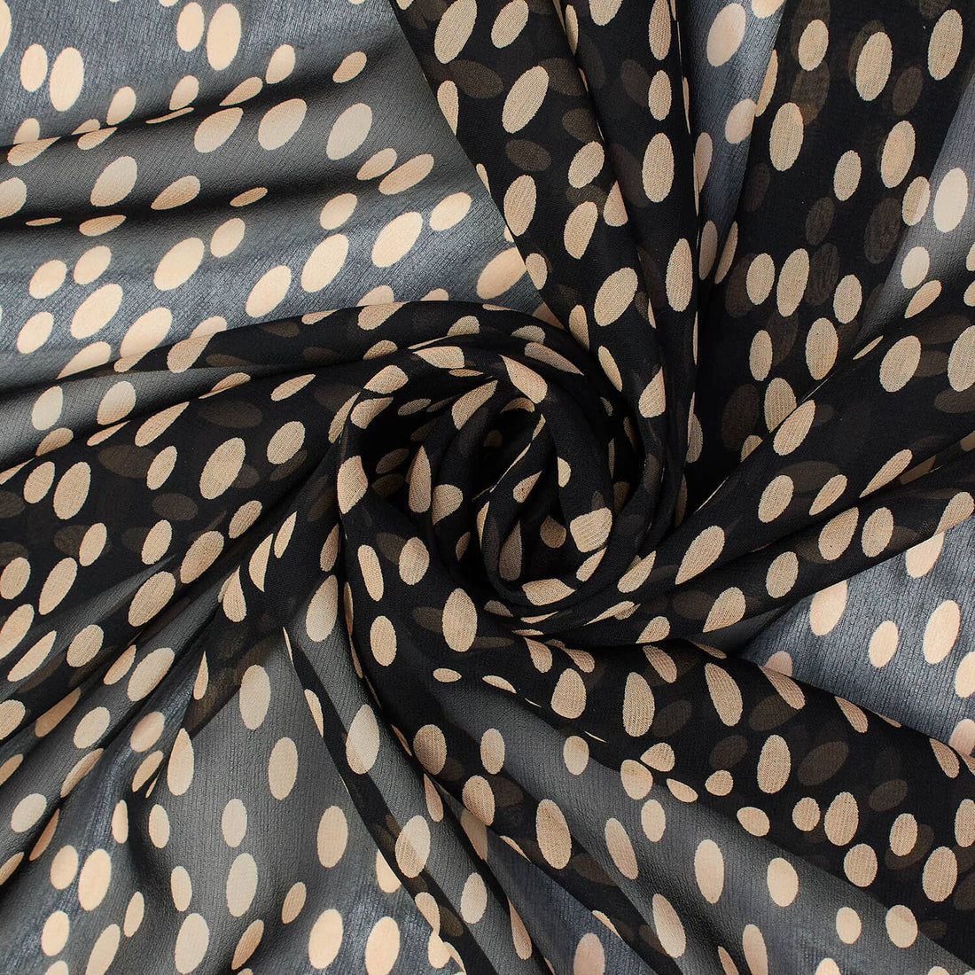 Spotted Printed Silk Chiffon—Multi Color Black Color—Sold By The Yard—Width 60/61 Inches—Available for Nationwide Shipping