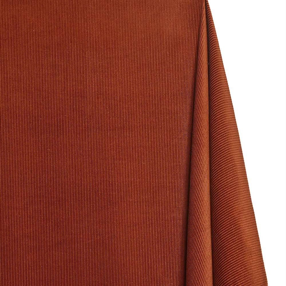 This premium Copper Brick Hue Standard 9 Wale Corduroy fabric features a durable 0.75-millimeter thickness and is crafted from 100% cotton for natural breathability and comfort. Measuring 59-60 inches wide and weighing 15.3 ounces per yard, it offers substantial heft ideal for upholstery, apparel, and accessories. Sold by the yard, this fabric combines classic texture with expert-grade quality, making it a versatile choice for refined, long-lasting projects.