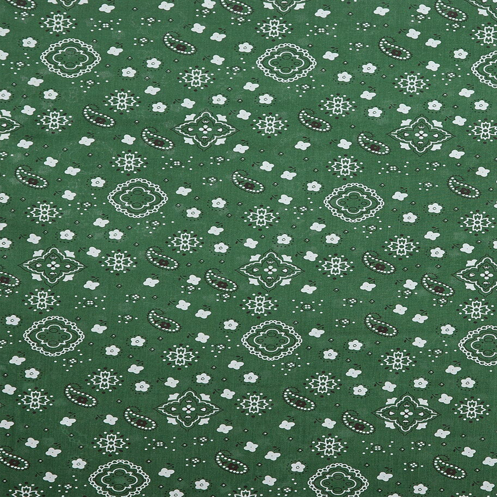 This hunter green print bandana is crafted from 100% lightweight cotton broadcloth, offering a soft and breathable feel perfect for all-day wear. Its versatile design makes it suitable for various uses, from fashion accessory to practical headwear. Enjoy comfort and style wherever you go, with convenient nationwide shipping available.