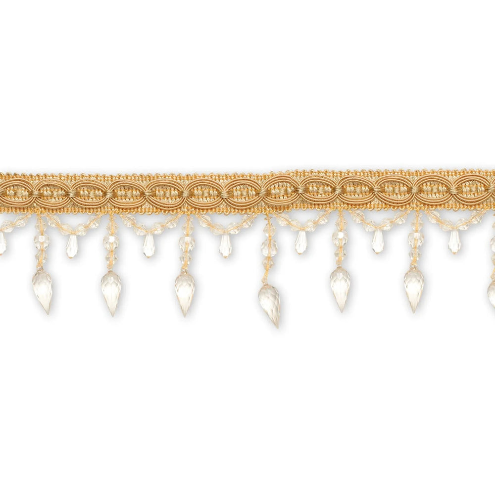 This stunning trim harmonizes the radiant sparkle of rhinestones with the timeless allure of pear-shaped beads, all beautifully accented by cascading tassels. Designed to elevate any project, it adds a glamorous finish to curtains, upholstery, fashion accessories, or costumes.