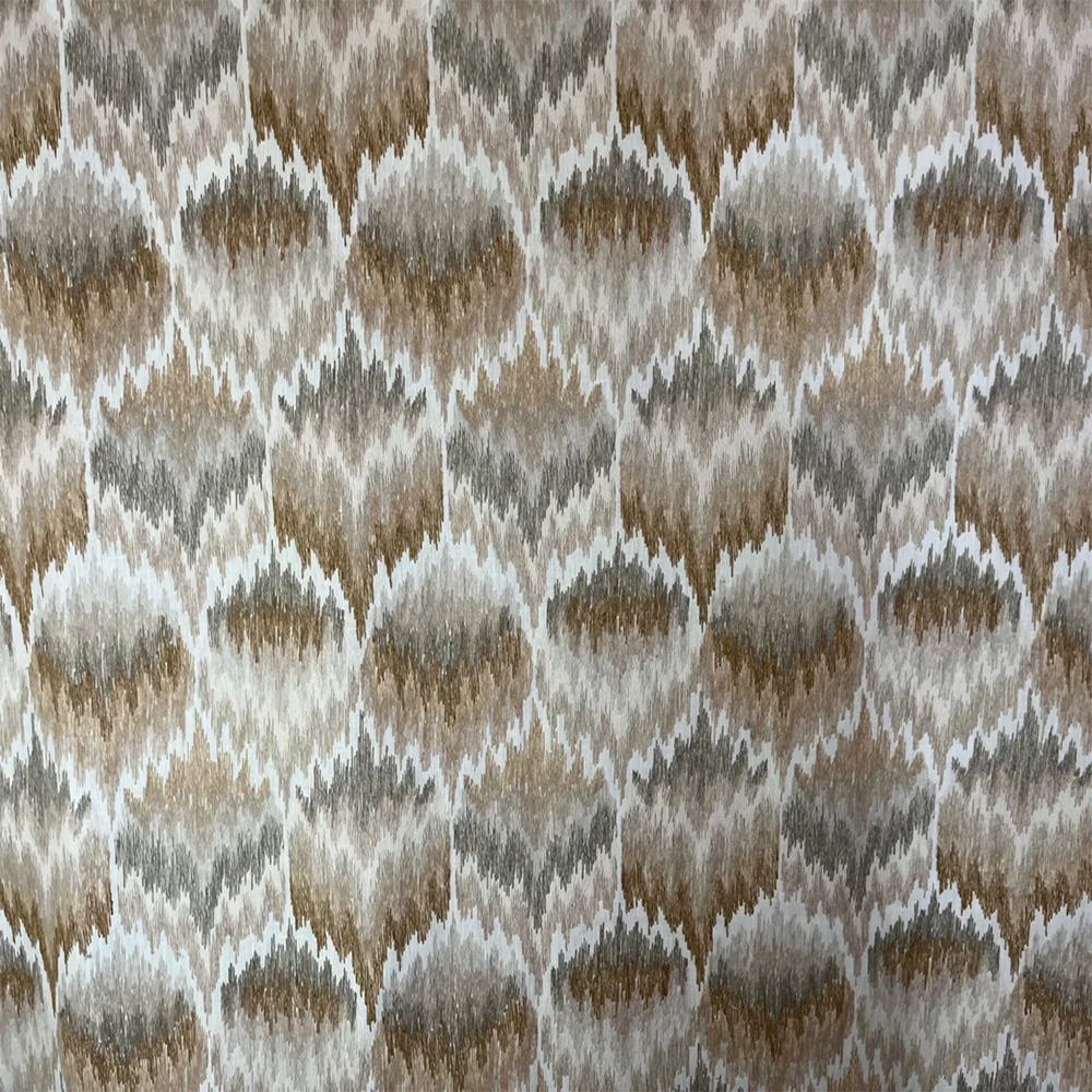 Enhance your home decor with this beautifully delicate and traditionally inspired Multi-Color Brown and Grey Embroidered Fabric. Featuring a rich design with alternating shapes in brown and sand, this fabric adds visual interest to any space. |