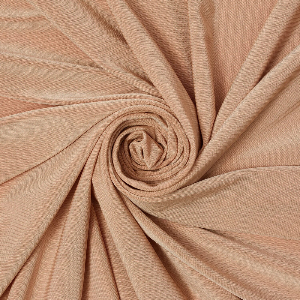 Saint Georgia fabric in a subtle Nude Hue blends 95% polyester with 5% spandex, offering a balanced combination of durability and stretch. With a generous width of 58 to 60 inches, this fabric is ideal for creating comfortable, form-fitting apparel. Sold by the yard, it provides versatility for a range of garment designs requiring both structure and flexibility.