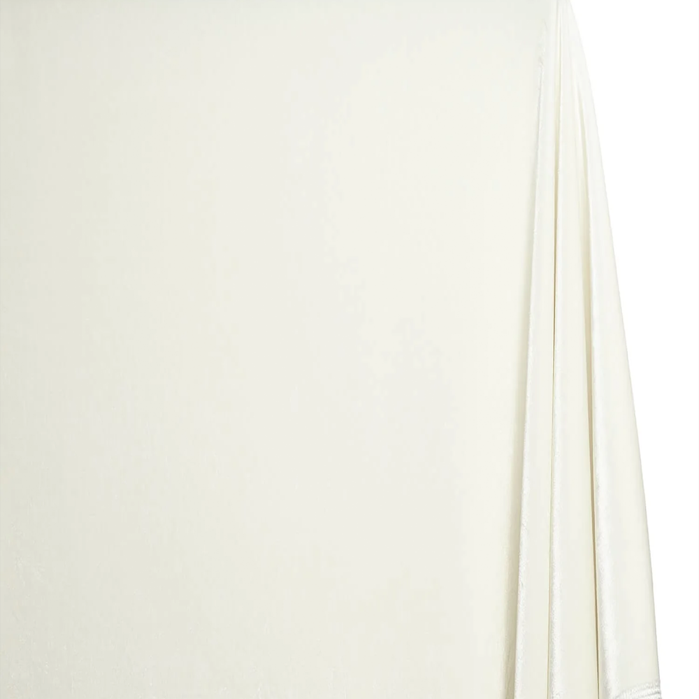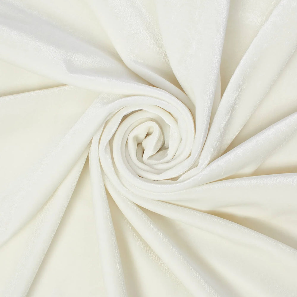 This off-white stretch velvet fabric combines 90% polyester with 10% spandex, offering a subtle 20% vertical stretch for enhanced flexibility. Measuring 60 to 61 inches wide, it is ideal for modern upholstery projects requiring durability and a soft, luxurious feel. Its vintage-inspired crushed velvet texture adds depth and elegance, making it a sophisticated choice for both classic and contemporary interiors.