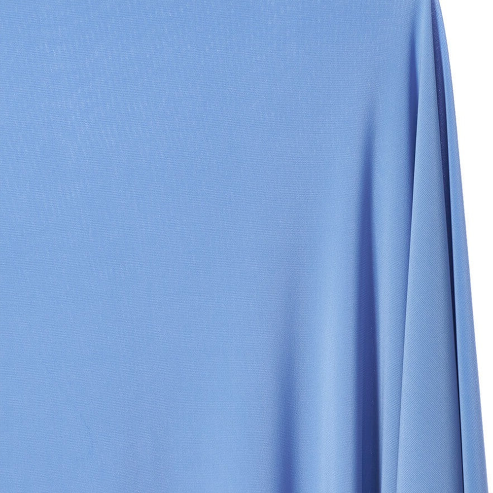 This Solid Light Denim Blue fabric combines the natural comfort of 100% cotton with the durability of a poly-cotton jersey knit. Measuring 0.75 millimeters thick and weighing 15.3 ounces, it offers a substantial yet flexible texture ideal for versatile applications. With a width of 59-60 inches, this fabric provides ample material for various projects, ensuring both quality and ease of use. Sold by the yard, it is perfect for creating garments or home textiles that require a soft, breathable, and resilient fabric.