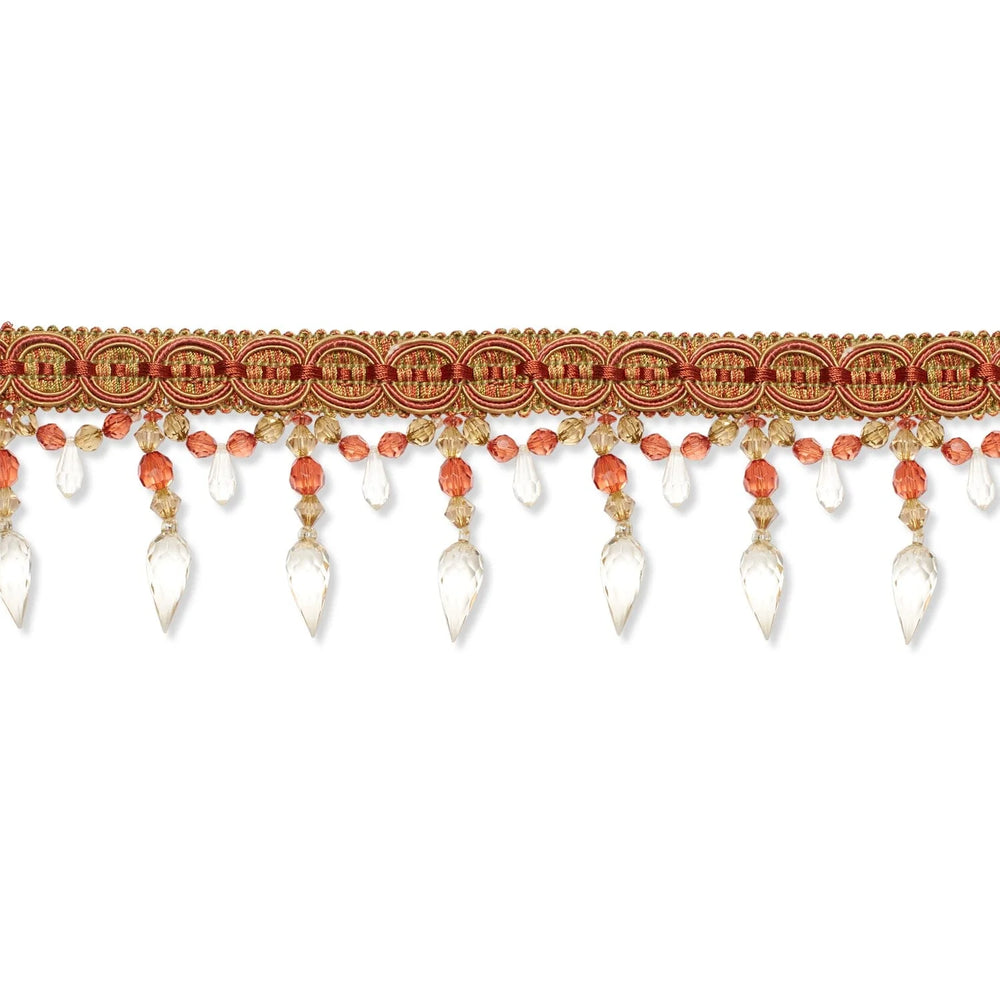 This stunning trim harmonizes the radiant sparkle of rhinestones with the timeless allure of pear-shaped beads, all beautifully accented by cascading tassels. Designed to elevate any project, it adds a glamorous finish to curtains, upholstery, fashion accessories, or costumes.