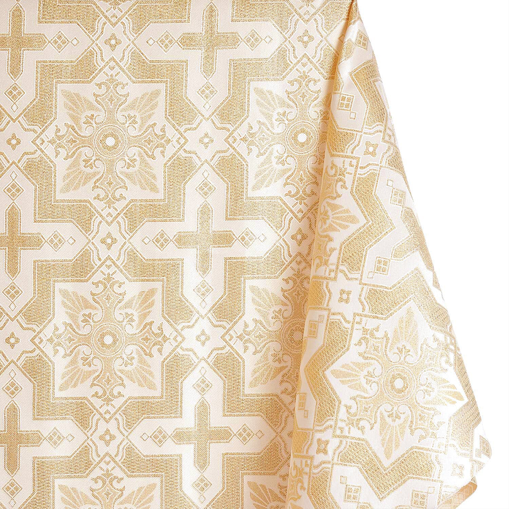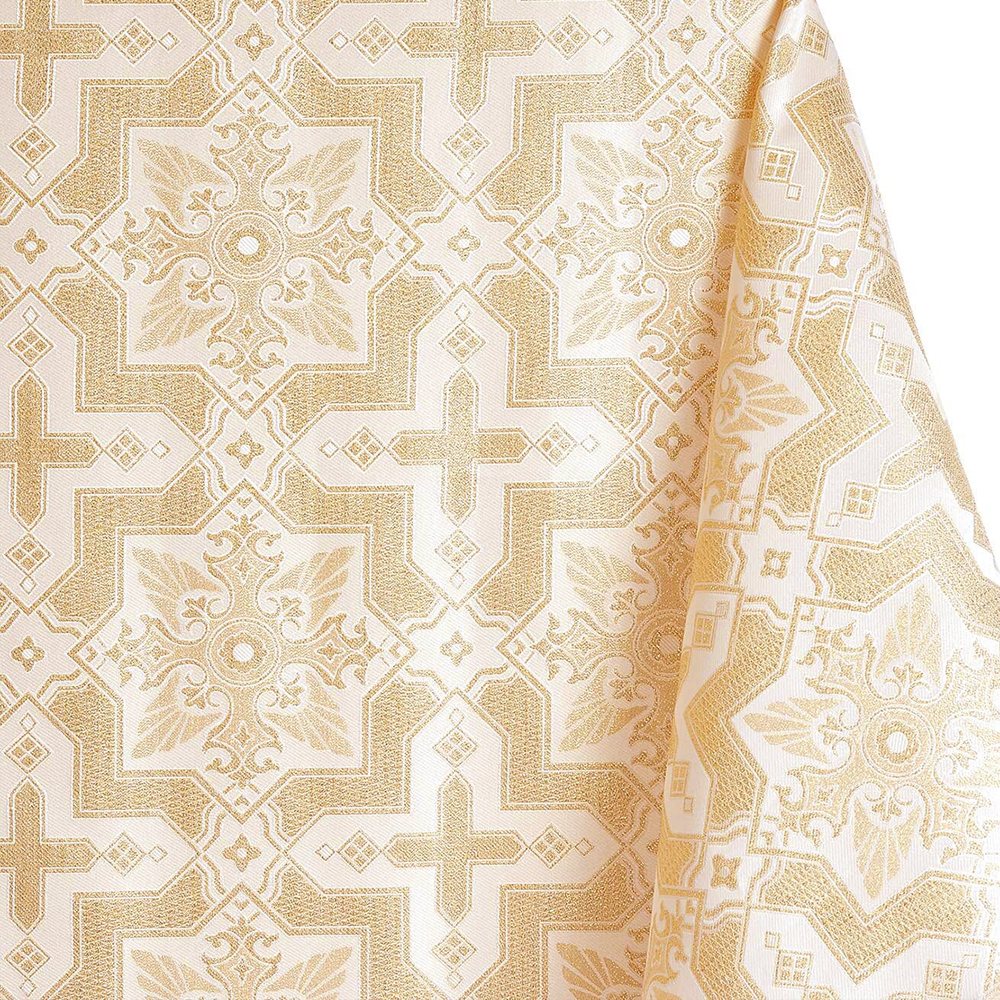 | Fabric Style | Ecclesiastical Metallic Brocade is a luxurious, textured fabric featuring an elegant double cross pattern woven seamlessly throughout. Crafted in a jacquard style from 75% polyester and 25% metallic fibers. |