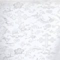 This sacred metallic fabric combines elegant white and silver tones with a striking church cross brocade pattern, ideal for vestments and religious décor. Its durable metallic weave offers a refined texture that enhances ceremonial garments and altar adornments, providing both beauty and tradition to sacred spaces. Perfect for creating meaningful accents that honor spiritual settings.